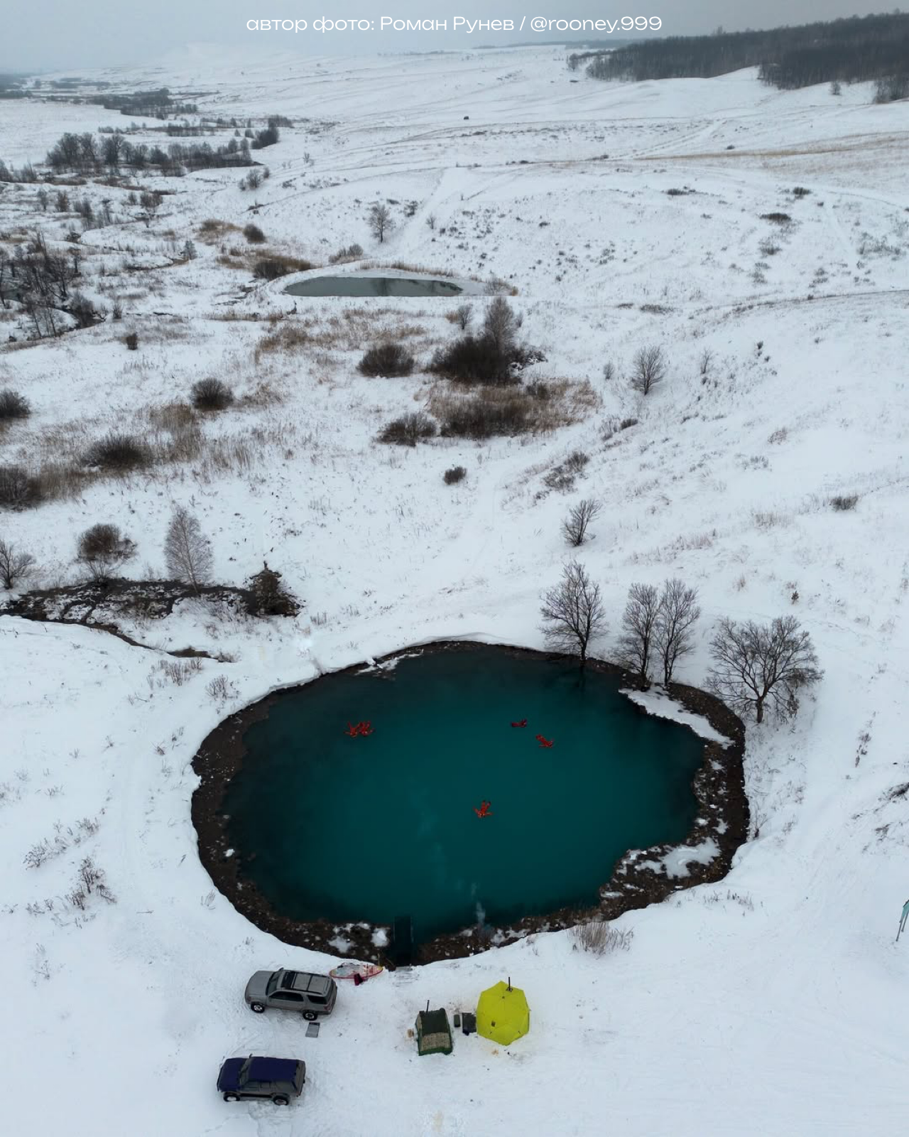 Это место — природный памятник с водой цвета аквамарина и кристальной прозрачностью. Вы будете лежать на воде, вокруг вас потрясающая холмистая местность, а под вами лазурная гладь. Это озеро не замерзает даже в самый сильный мороз, поэтому доступ к воде у нас будет всю зиму.