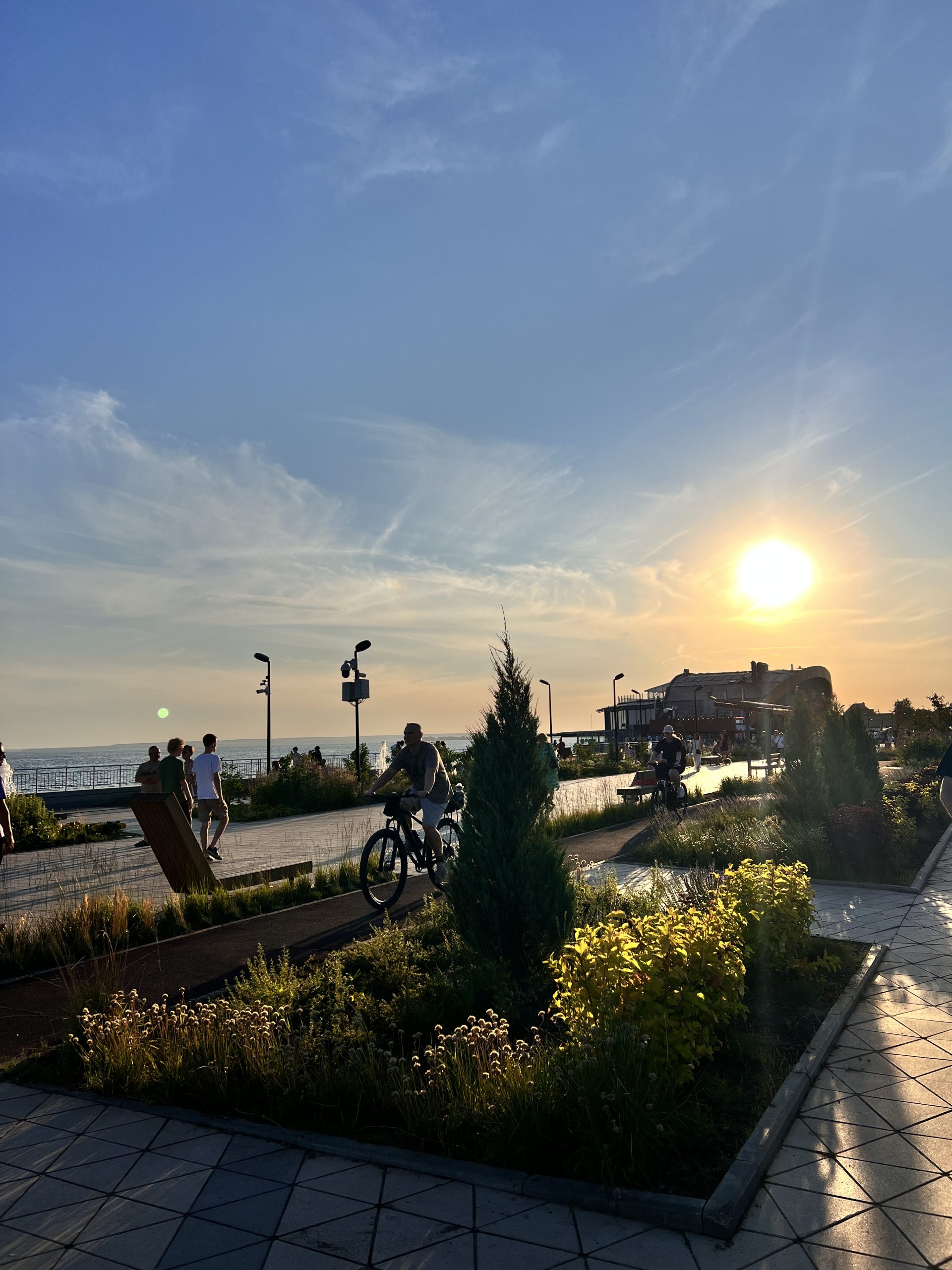 Начнём с прогулки у воды. Набережную здесь обновили: красивый ландшафтный дизайн, летние кафе, смотровые площадки. Идеальное место, чтобы размяться после дороги и вдохнуть волжский воздух. А ещё — сделать первые кадры: Жигули на том берегу, река, бескрайнее небо.