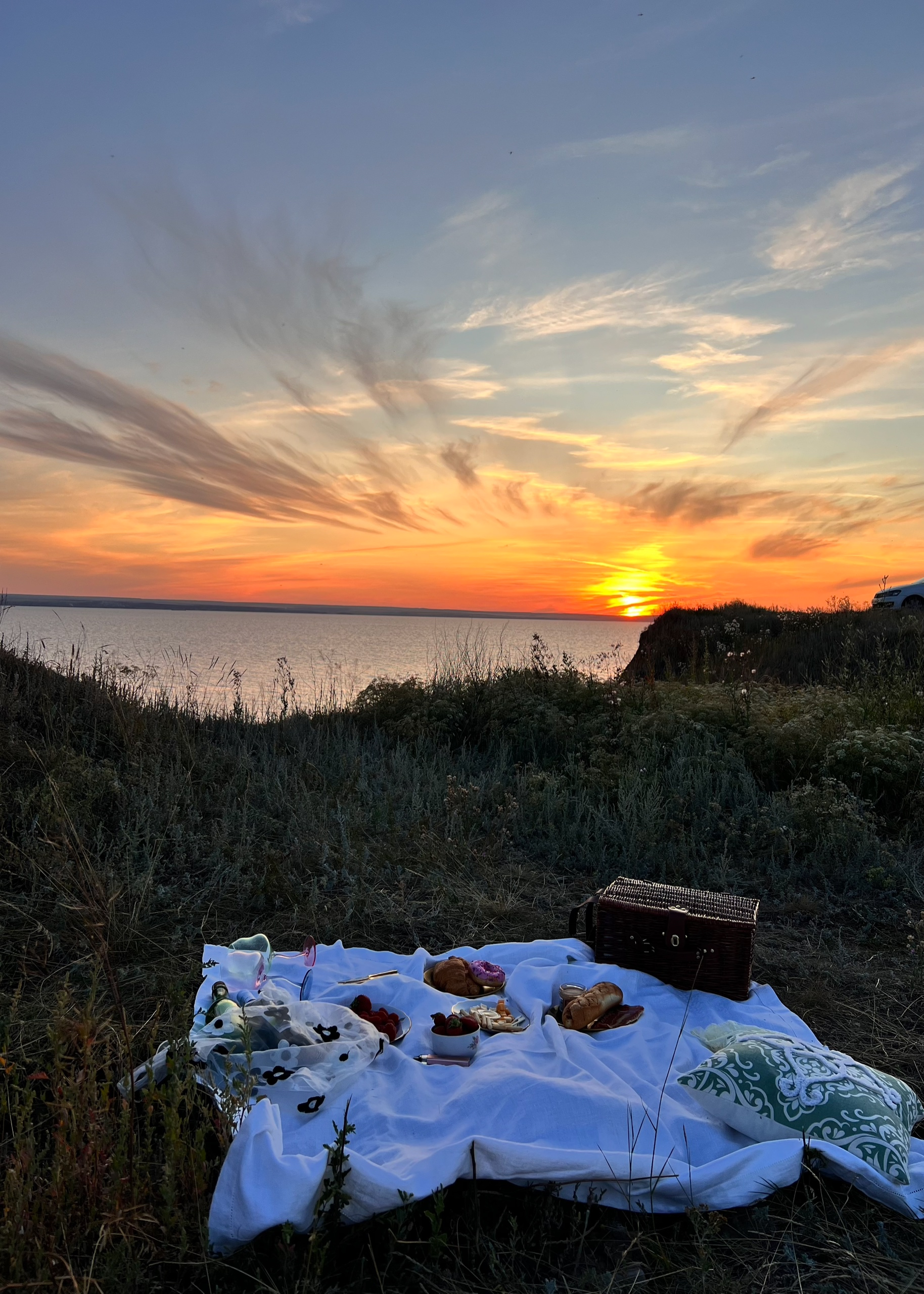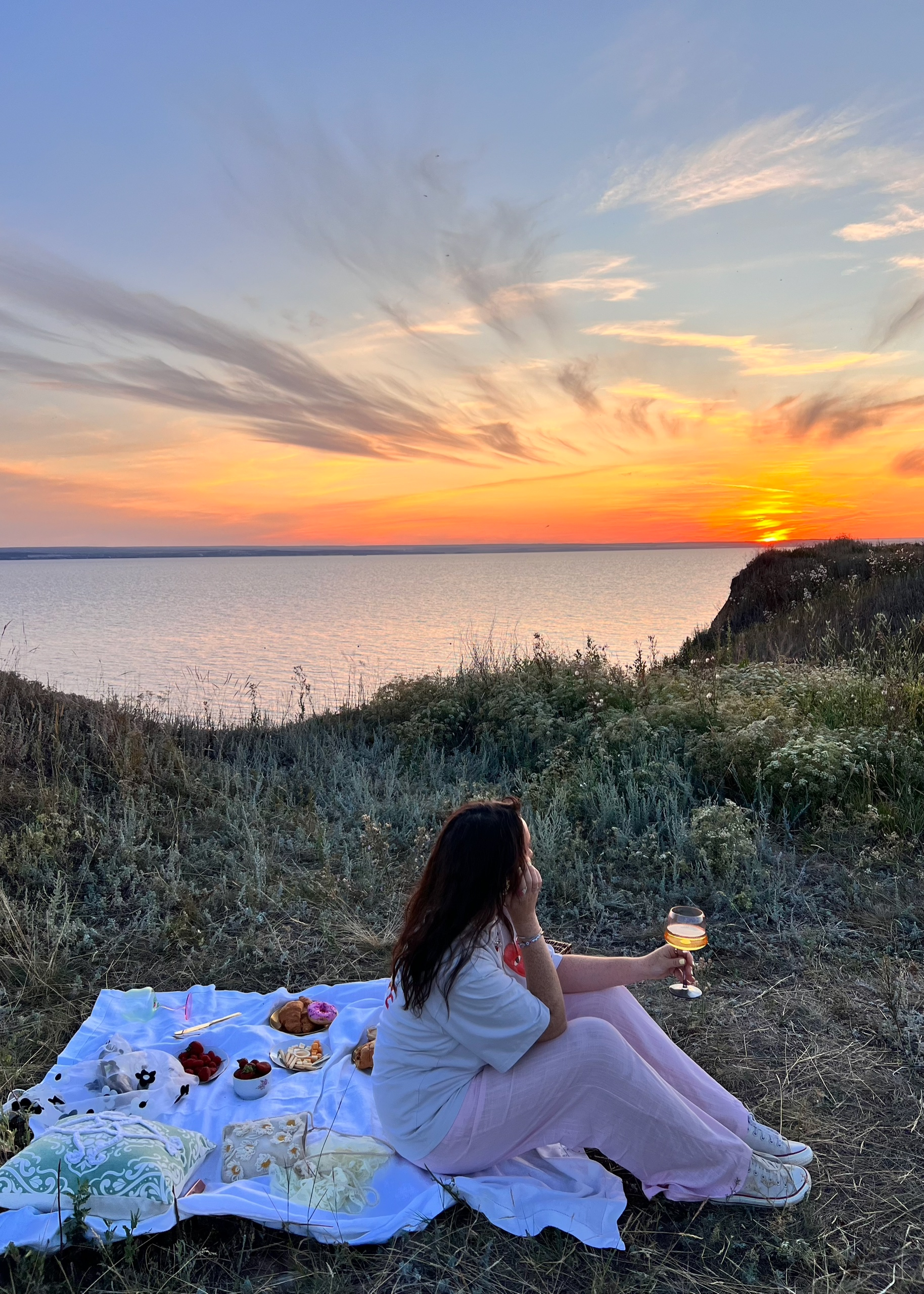 Мы поедем в Тольятти, чтобы увидеть Волгу с потрясающе красивой обновлённой набережной, а потом — уедем туда, откуда открывается главная картина вечера. Обрывы у села Ягодное — место, где берег взлетает над водой, а Волга здесь такая широкая, что появляется ощущение, будто ты на берегу моря. Жигулёвского моря. Здесь мы расстелим плед, откроем термос и будем смотреть, как солнце медленно садится в воду, окрашивая небо в розовый, оранжевый и золотой.